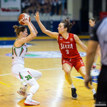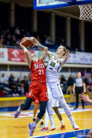 Nie był to może zbyt piękny mecz, dziewczyny popełniły sporo głupich błędów i często grały niedokładnie, ale wyrównana walka od początku do końca dostarczyła sporo emocji. W zespole Ślęzy już tradycyjnie najlepiej zagrała Stephanie, która zdobyła 20 punktów na bardzo dobrej skuteczności i zebrała 16 piłek, a dodatkowo trafiła z trudnej pozycji ostatni decydujący rzut. Dobrze zagrała Julia, która miała 14 punktów i 8 asyst przy tylko jednej stracie oraz świetną skuteczność z wjazdów i półdystansu. Gdyby nie 0/5 za trzy jej występ można by uznać za niemal doskonały. Świetny mecz rozegrała Ola, która mimo młodego wieku zaczyna być coraz ważniejszym punktem drużyny. Dziś zdobyła podobnie jak Julia 14 punktów, najwięcej w jej krótkiej karierze. Do tego zrobiła to na imponującej skuteczności trafiając wszystkie swoje 4 rzuty za 3 punkty i jeden z dwóch za dwa po bardzo efektownej akcji. Ważne trójki trafiała Renata, a pozostałe, chociaż dziś mniej skuteczne, pracowały mocno w obronie. Cieszy wygrana, ale w kolejnych meczach zespół musi ograniczyć niepotrzebne straty i złe decyzje. Mocno liczymy, że dzisiejsze zwycięstwo podbuduje dziewczyny i będą grały coraz lepiej.