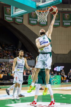 Początek czwartej kwarty należał do Aleksandra Dziewy. Reprezentant Polski zdobył 6 punktów, popisując się przy tym akcją 2+1 i wyprowadzając Śląsk na pięciopunktowe prowadzenie. Goście cały czas pozostawali w grze i mimo kolejnych trafień Dziewy i Ramljaka, wynik pozostawał otwarty. Nasz numer 11 się jednak nie zatrzymywał, a kluczowym momentem całej kwarty wydawał się popełniony właśnie na nim faul niesportowy gości.